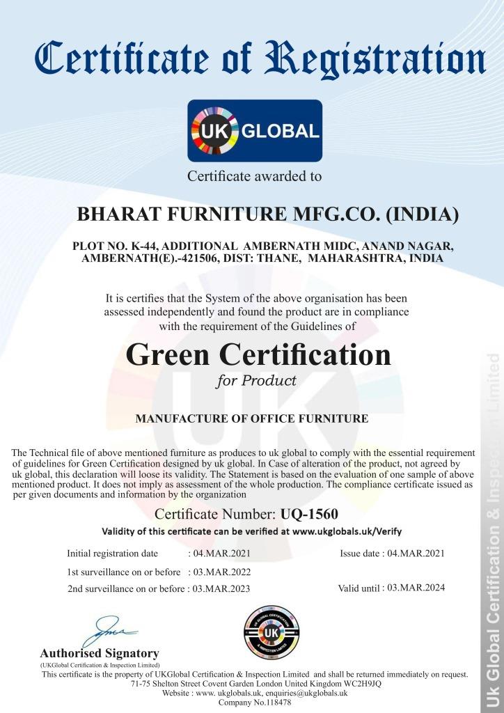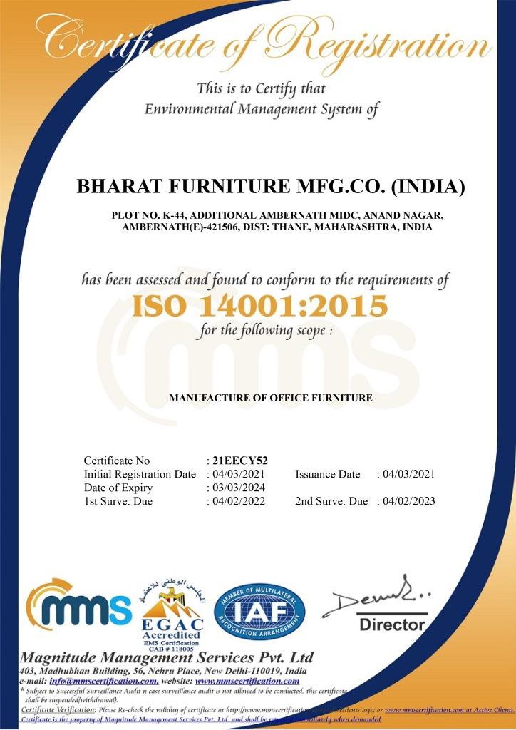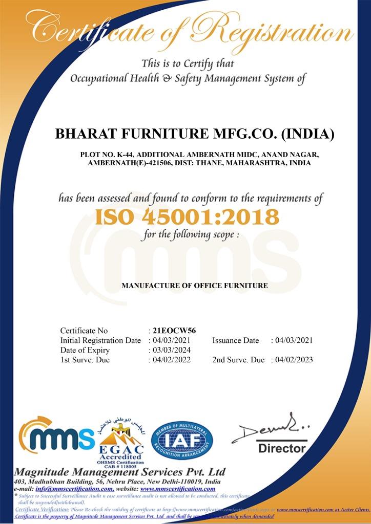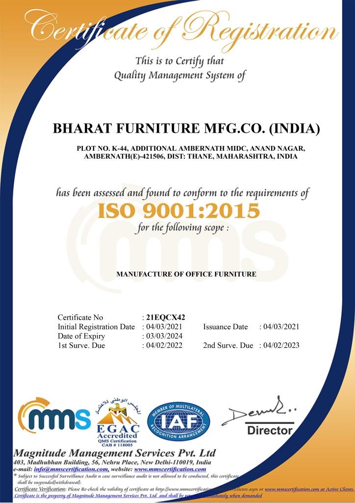 Bharat Furniture Mfg Co.(India) Plot No. C-7, Ambernath MIDC, Near Kansai Fatak, Ambernath (W) - 421501 Dist Thane. Maharashtra. India.